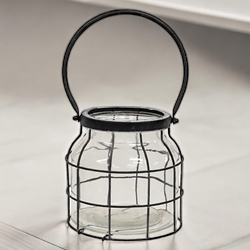 Classic Glass Jar in a Black Metal Carrier