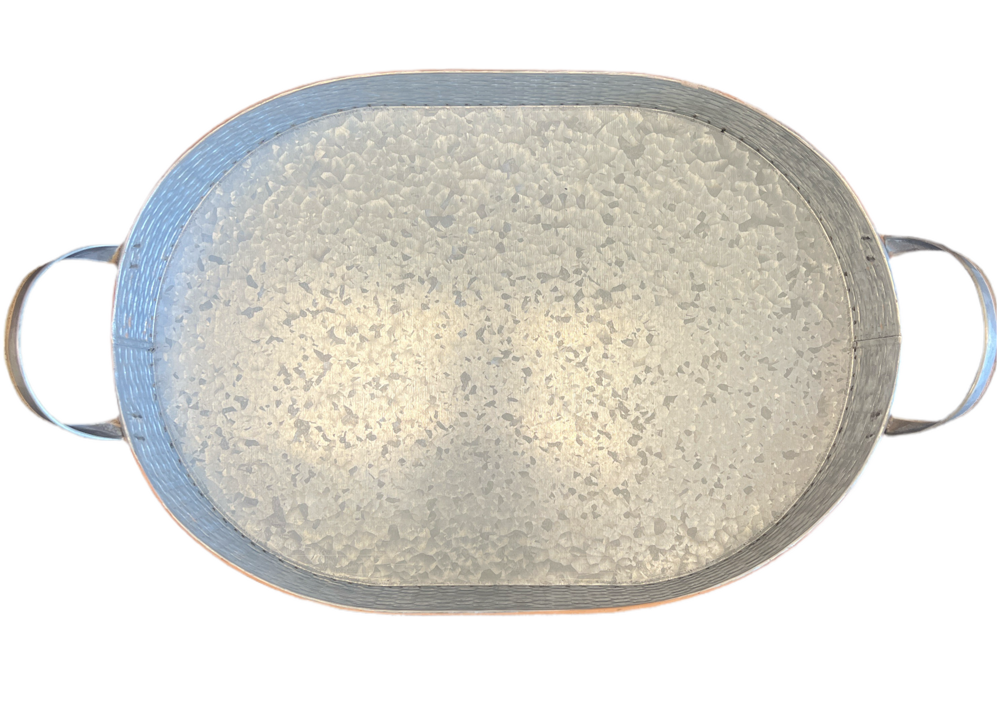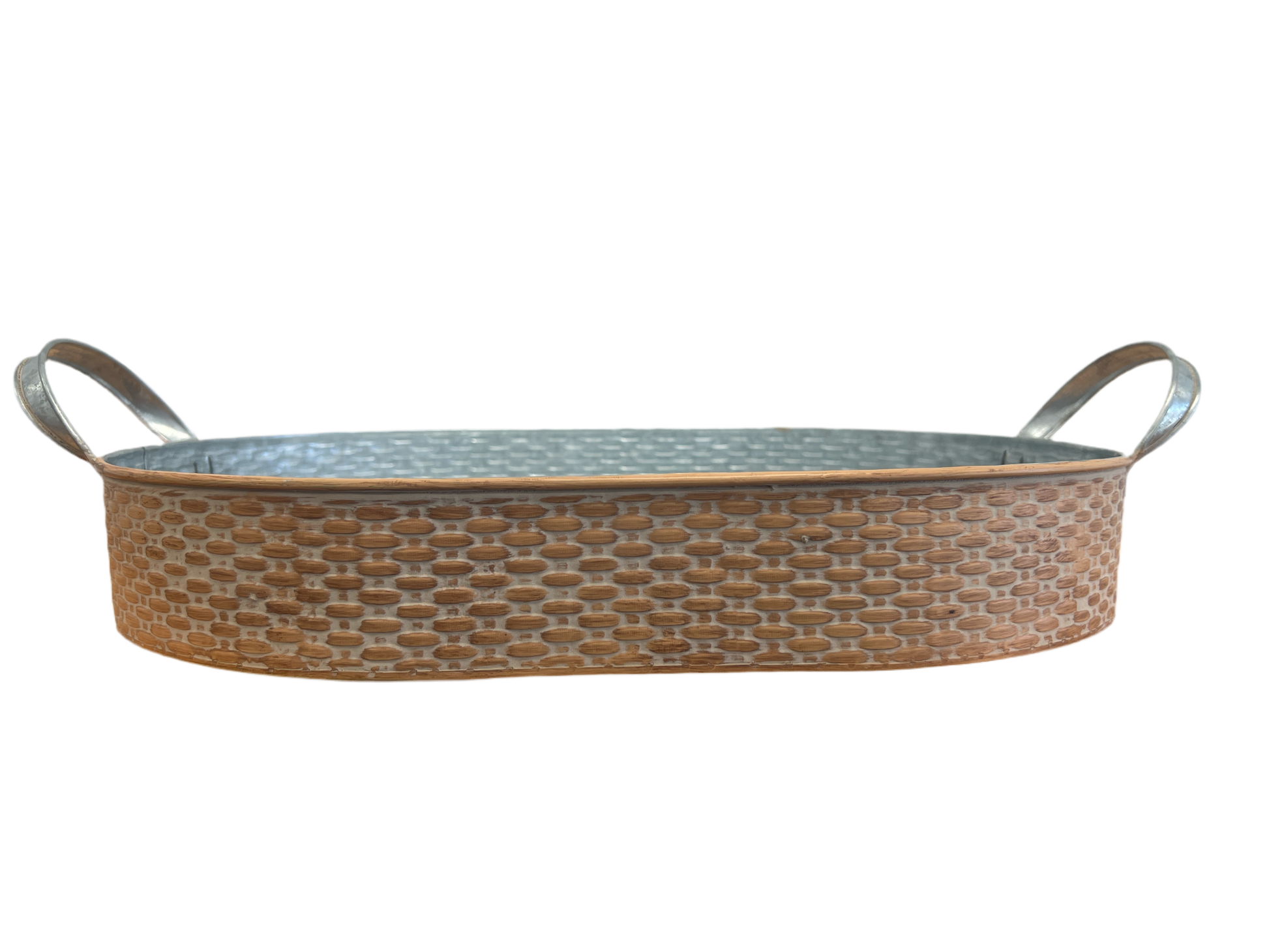 Basket Weave Embossed Oval Metal Tray with Handles - Large