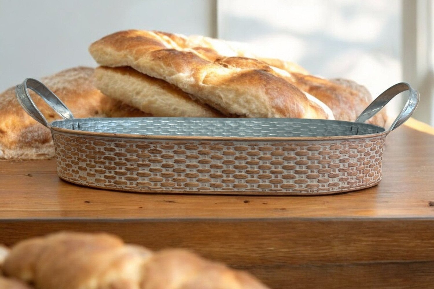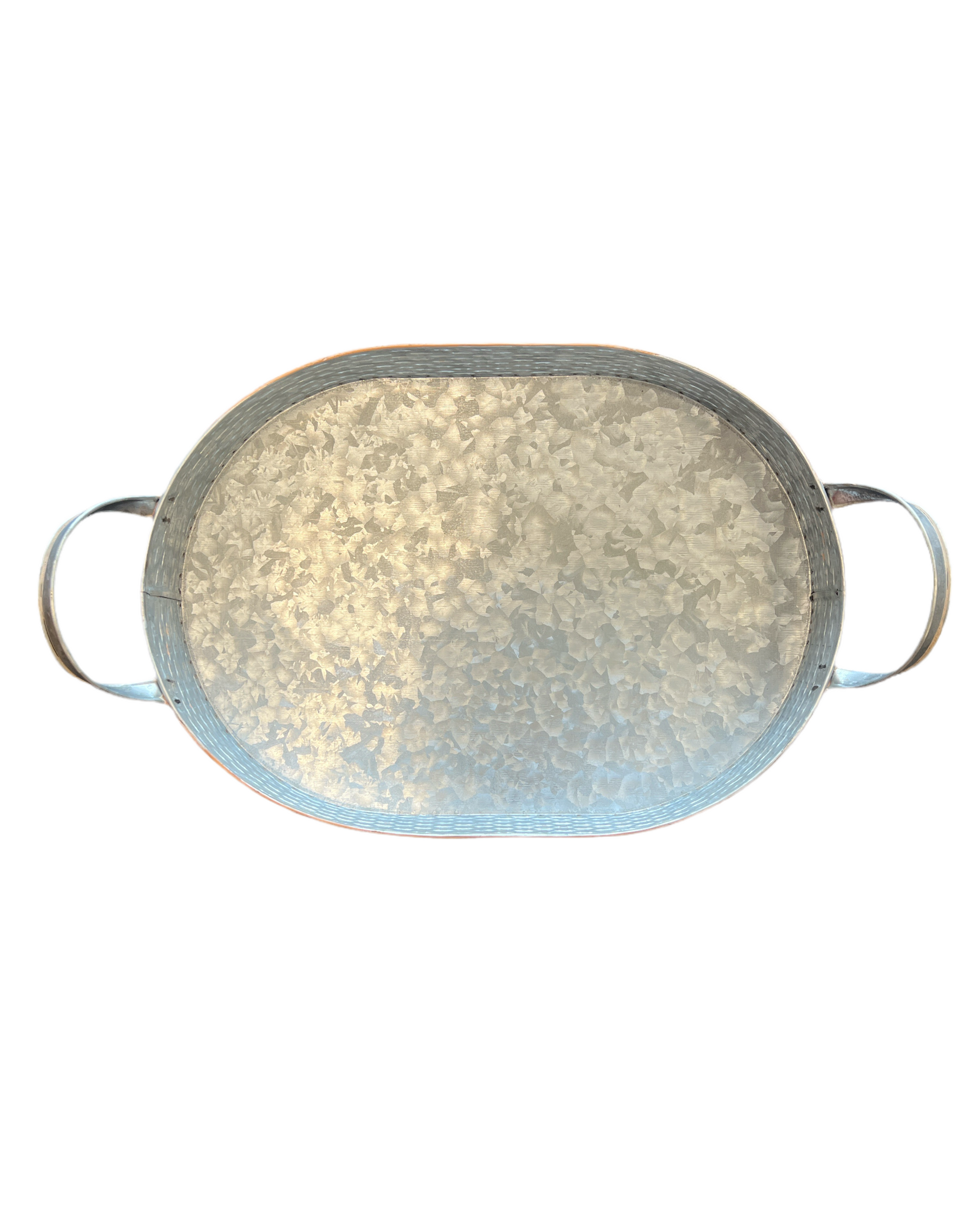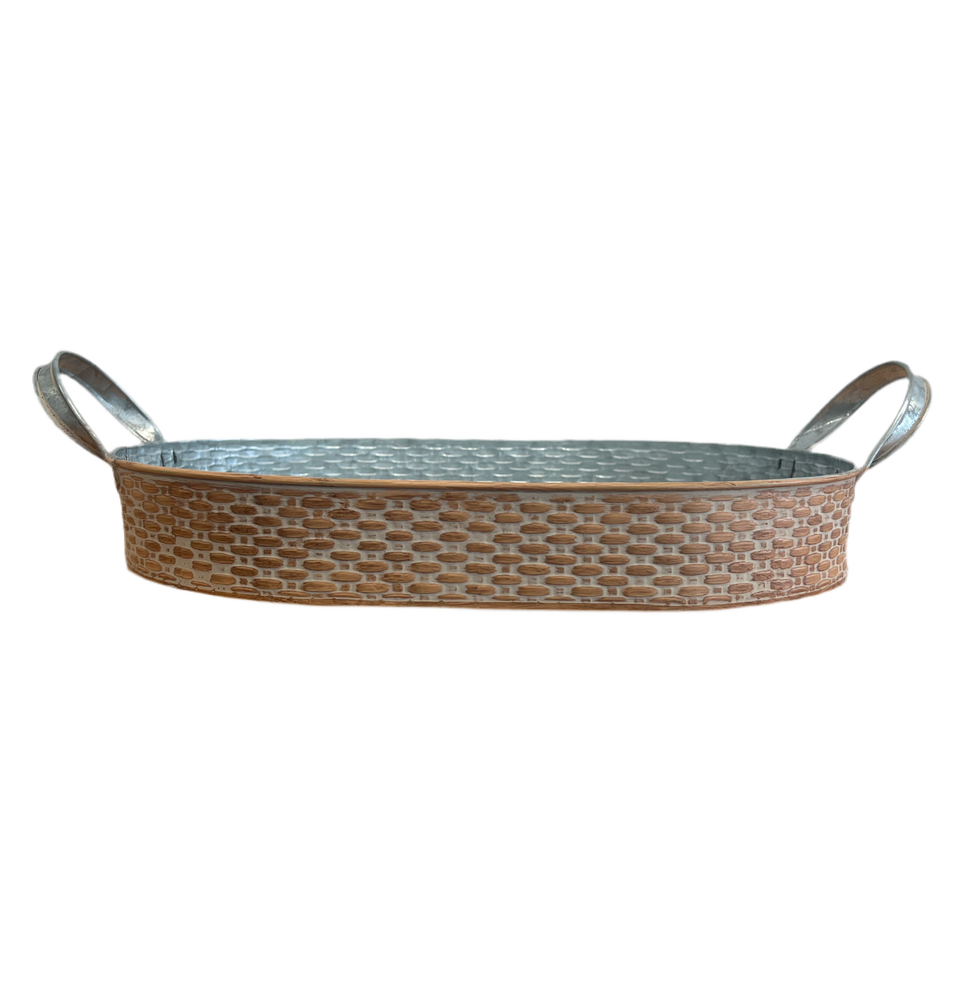 Basket Weave Embossed Oval Metal Tray with Handles - Small